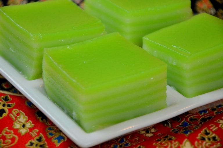 Görünümü küçük sabun kalıplarına benzeyen Khanom Chan, Hindistan cevizi sütü ve pandan aroması ile hazırlanıyor. Bu küçük şekerlemeler yapışkan bir yapıya sahip olsa da oldukça lezzetli bir tada sahip.
