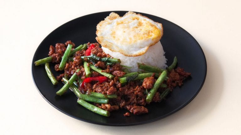 Acı seviyorsanız tam sizin damağınıza göre bir önerimiz var, pad kra pao. Domuz ya da tavuk kıyması acı biber ve reyhan ile birlikte kavruluyor ve pirinç üzerine servis ediliyor. Hem sokaktaki tezgahlarda hem de restoranlarda kolaylıkla bulabileceğiniz bu lezzeti acıseverlerin kaçırmamasını öneririz.